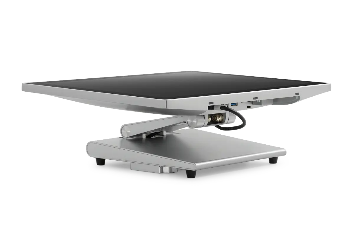 Рабочий процесс с моноблоком комфортен благодаря его бесшумной работе, что важно для кассиров и официантов. Эргономичная подставка позволяет наклонять и поворачивать экран для удобства работы, а при необходимости устройство можно установить на стену.