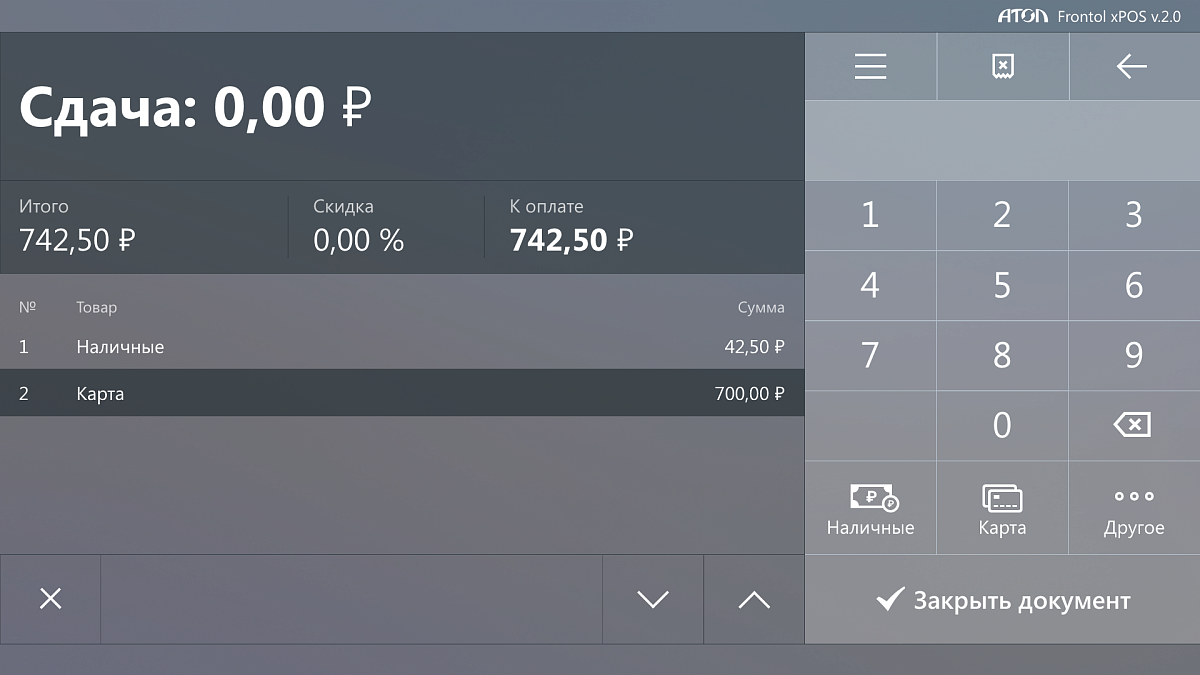 - Интерфейс Frontol xPOS 3 оснащен функцией работы с сенсорным экраном и поддержкой планшетов на базе ОС Windows 10.