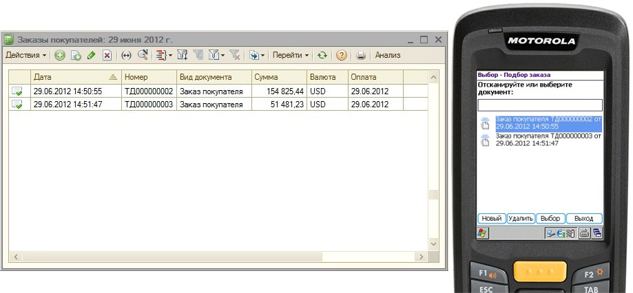 Алгоритм работы ТСД с прикладной базой 1С при просмотре списка доступных документов